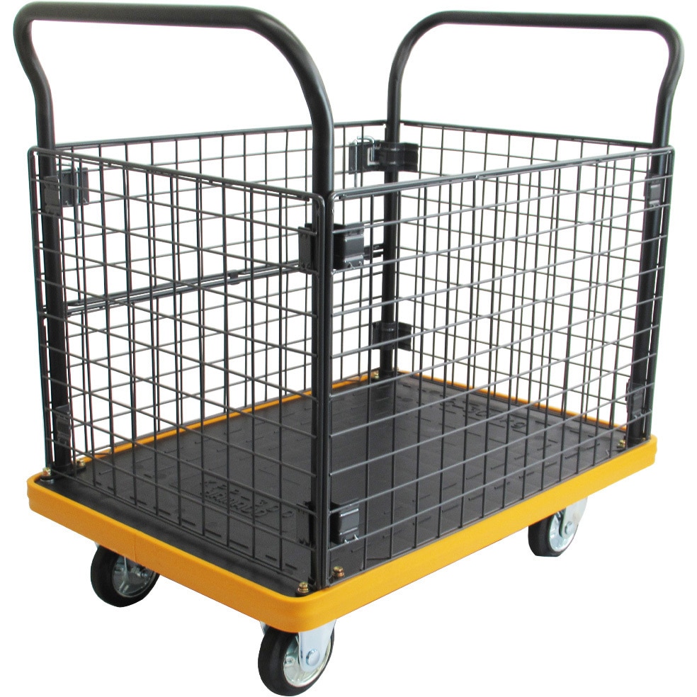 【格安saleスタート】 BT900KJ5-E100T-M4 4台まとめ買い 連結型樹脂製平台車ビートル オール自在タイプ(とめたろう・収納式柵付) TRUSCO 樹脂(PP)再生材100%製 ブラック色 1セット(4台) BT900KJ5-E100T-M4